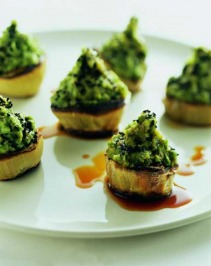 2. Remove the dish from the oven and serve the hot onions each topped with a large dollop of lentil-zucchini-mash and sprinkled with sea salt and freshly ground black pepper to taste.