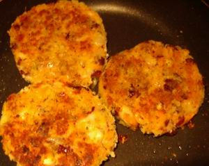ingredients bar flour (oil already used. ;-) Form into burgers. Coat with